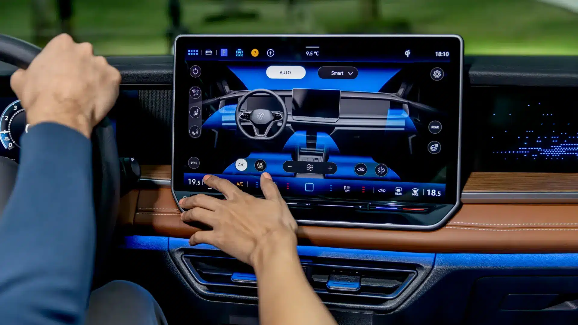 Controla el clima en el Nuevo Tiguan 2025 desde su pantalla táctil. Ajusta la temperatura para crear un entorno ideal para cada miembro de tu familia.