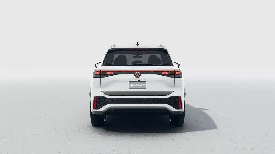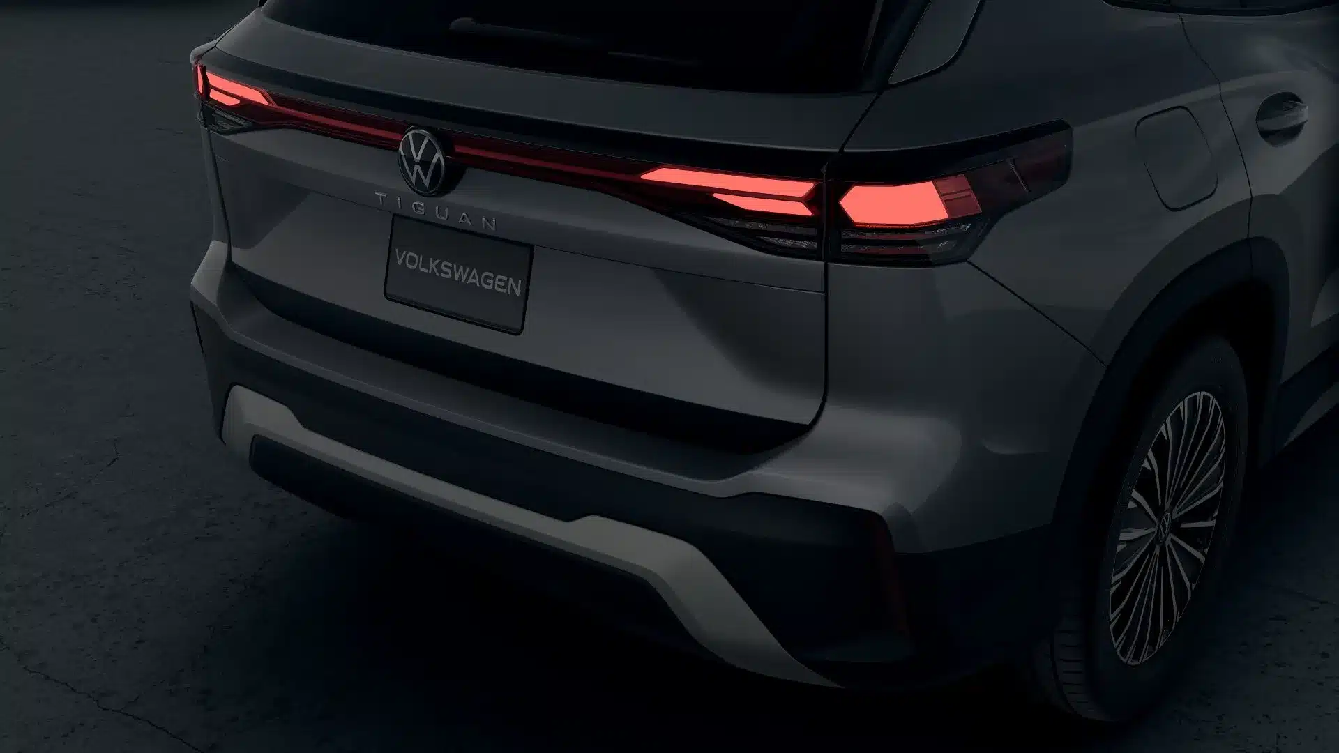 Firma nocturna La parte trasera del Nuevo Tiguan 2025 se destaca por un diseño cómodo, con emblemas Volkswagen iluminados.